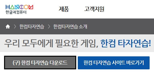 홈페이지에 접속하셔서 메인화면 맨 하단에 있는 [한컴타자연습] 메뉴로 들어가시면 구버전 프로그램을 다운받을 수 있습니다. 타자를 처음 하시는 분이나 타자능력을 향상시키고 싶은 분 등 누구나 쉽게 즐길 수 있는 게임이며,